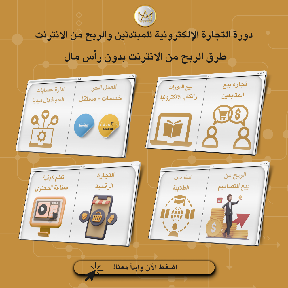 دورة التجارة الإلكترونية للمبتدئين والربح من الانترنت هي تجربة متكاملة تبدأ بك من الصفر وحتى تحقيق الأرباح العالية بإذن الله.
