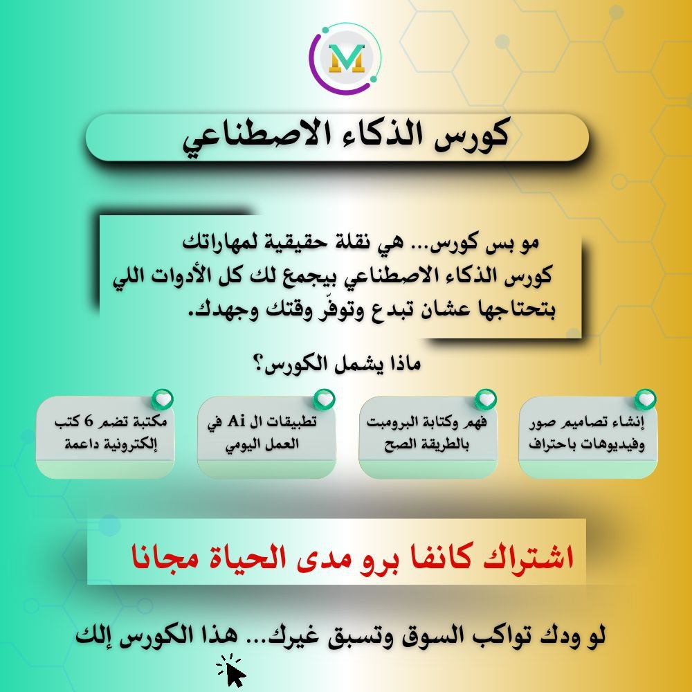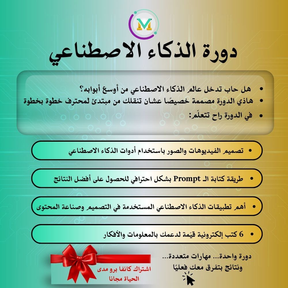 كن من أوائل من يواكبون ثورة الذكاء الاصطناعي بالعربي، وابدأ بتطوير مهاراتك وتحقيق دخل إضافي أو تحسين محتواك الرقمي.