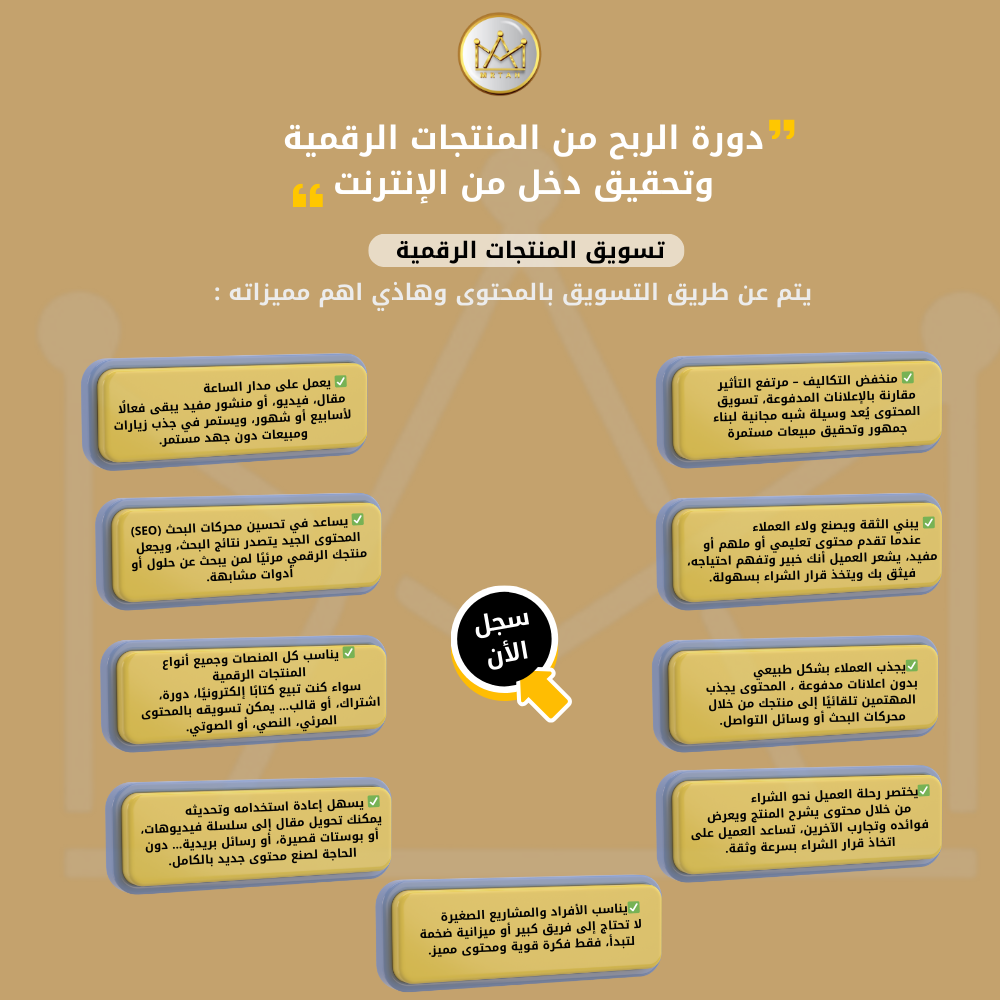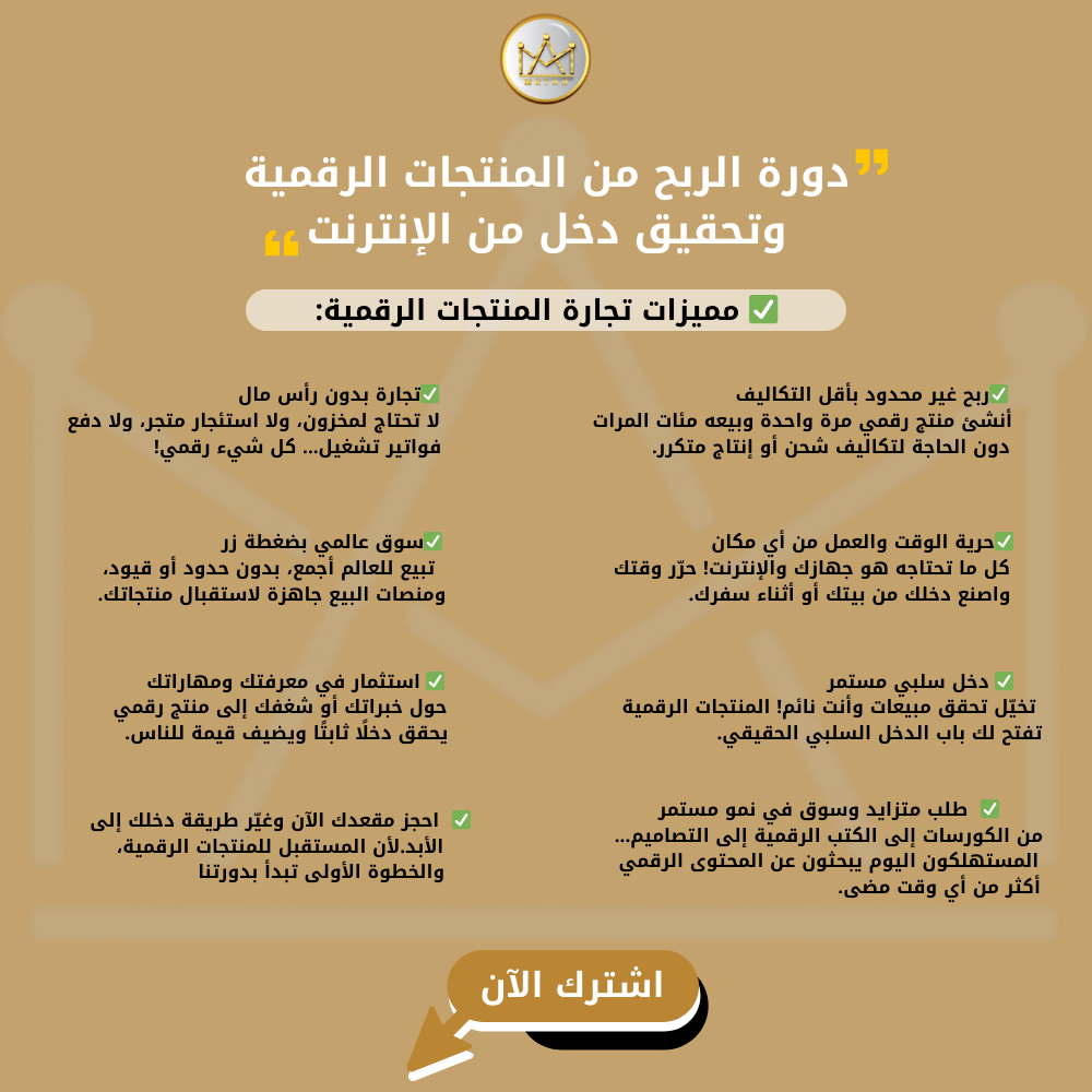 دورة الربح من المنتجات الرقمية هي تجربة متكاملة تبدأ بك من الصفر وحتى تحقيق الأرباح العالية بإذن الله.